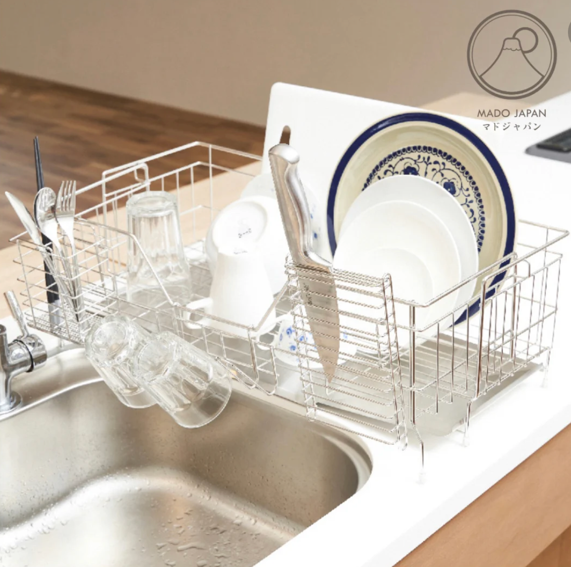 Mado JP寬度可伸縮不鏽鋼瀝水籃 🌱在有大量物件的情況下,可以通過增加寬度來增加容量 🌸水從托盤中心流到水槽 🌿可以在狹小的空間內使用 🌷高質不鏽鋼,美麗而時尚的儲物架 🌱材料是耐用且衛生的18-8不銹鋼材料 👍附送刀架、餐具筒配件,更多功能收納 尺寸:見附圖 生產地區:中國(Mado JP連携商品) 材質:304不銹鋼 透過Mado JP連携,把日系生活風格帶回家 🥰